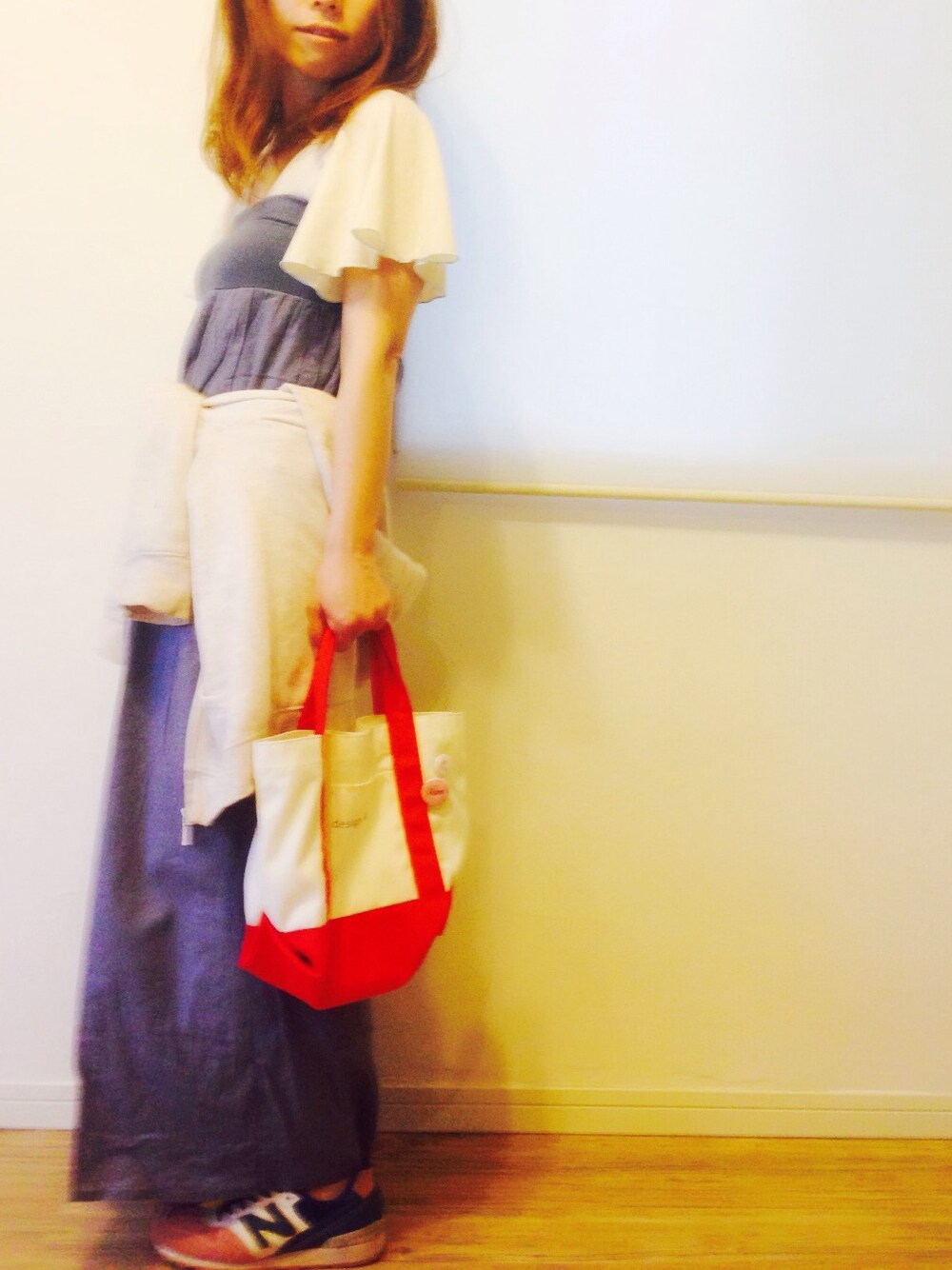 娘が撮ってくれました。 若干ブレてるのは ご愛嬌😂😂😂 今日は、お花見からのコボスタ。 楽天のファンクラブにも入ってます✨笑 今日は、めっちゃ良い試合でしたーーー⤴︎⤴︎ 今年もいっぱい応援に行きたい!! ベアトップは、ワイドパンツになってて ラクチンだし、これからの季節にぴったり♡ ベアトップ:KBF トップス:パラビオン バッグ:自分でデザインしたの
