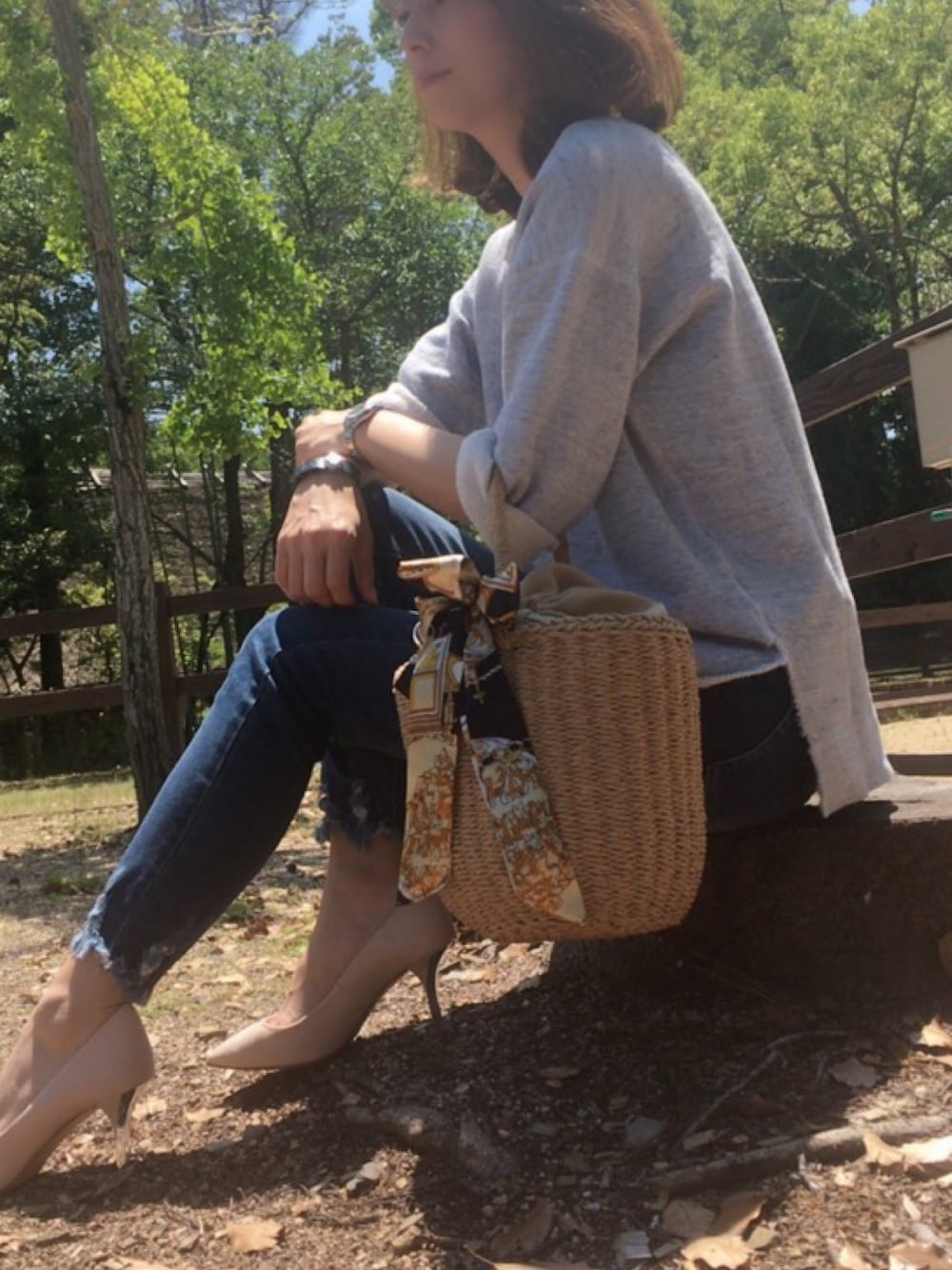 ロンハーマンのスウェット ラフな感じでお気に入り💓 ZARAのパンプスはヒールだけシルバー 履きやすいし形も好きです✌️