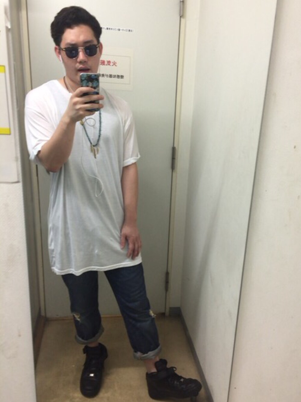 今日のコーデ✨ 白Tにジーンズのシンプルコーデ👕 だけど白Tはビッグシルエットで今風な感じに♫ ネックレスは手作りです! また何か作ろうかな… 梅雨明けて暑くなってきたけど頑張りましょー!
