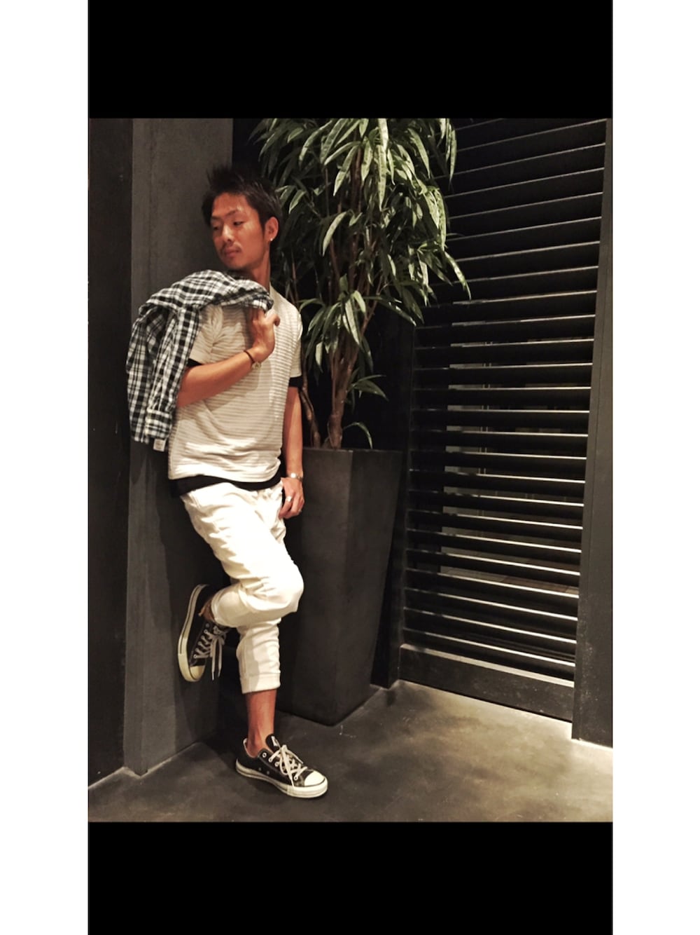 今回のテーマは”オールホワイト”✨ どのコーディネイトにも欠かせない ホワイトカラーを全身コーデにしてみました! 夏になると半袖半ズボンSTYLEが中心で あんまりお洒落が出来ないと思いがちですが 重ね着をする事により袖と丈から見える ブラックカラーがPOINTです😎🎶🎶 チラ見せが男性心を燻りますよね😍笑 そしてオールホワイトの差し色で 今回はブルーのチェックシャツをチョイスしてみました😊✌️ 夏や海を連想させるブルーカラー! これもかかせません😘👌 オールホワイトコーデを着て 海に行ってみてわいかがですか?😋✨