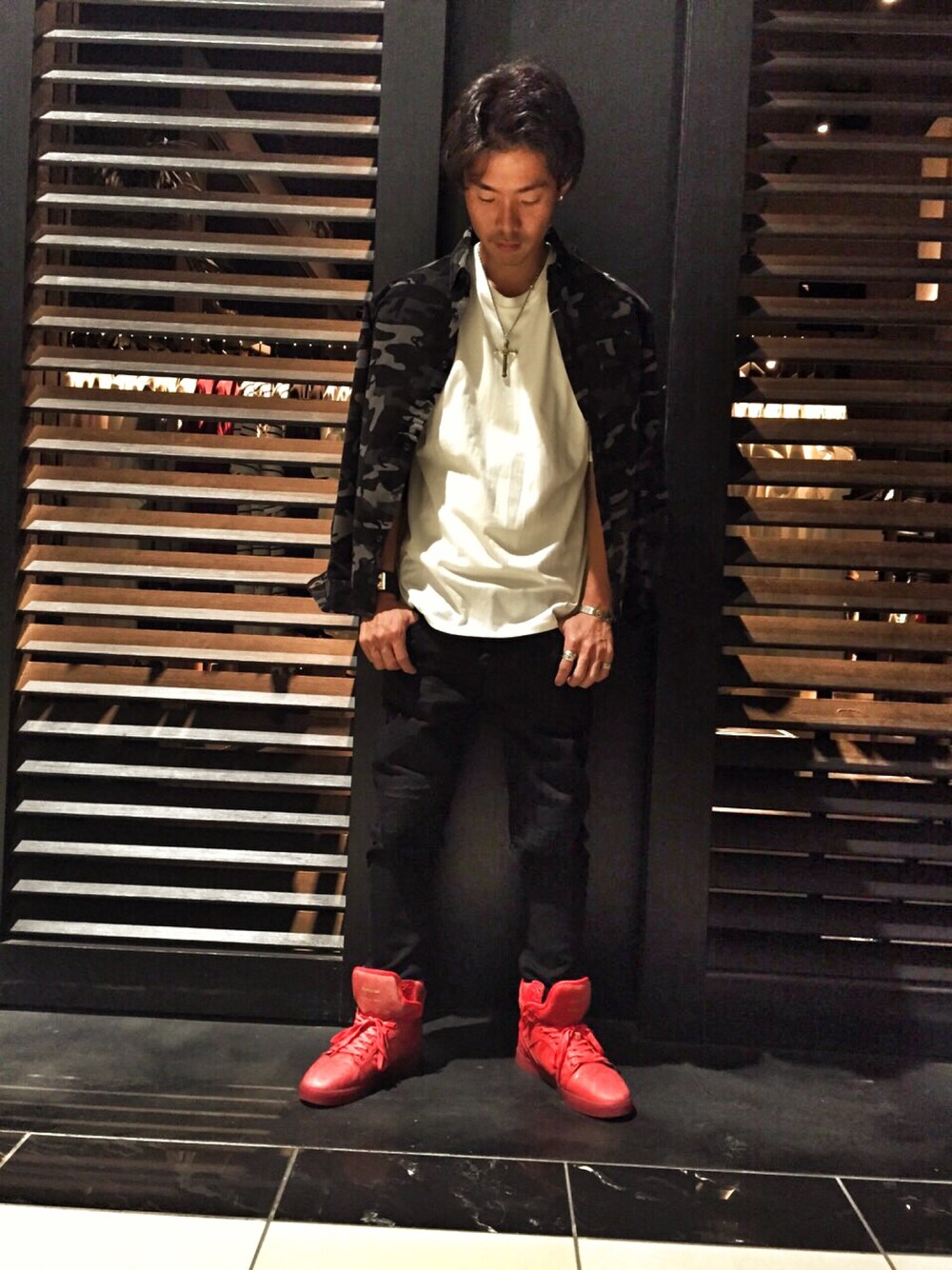 今回は迷彩シャツを使った モードストリートコーデにしました👣 迷彩のシャツの中に あえて大きめのサイズをチョイスし ビックシルエットにしました😋✨👍 パンツはリメイクダメージデニムを合わせ 全体的にモノトーン+足元に差し色で👍👍👍 アウター類たくさんご用意してますので お待ちしております(^^)