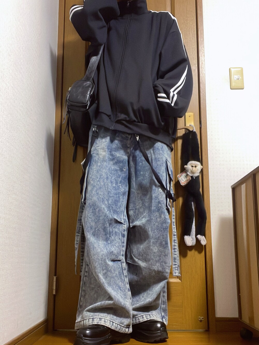 こうへいのブルゾン「ルーズシルエットバルーンスリーブフェイクサスペンダードレープトラックジャケット」を使ったコーディネート