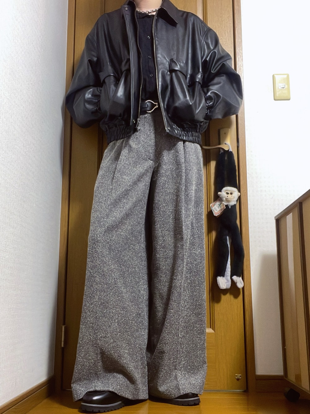 25AW🍁 vol.42 ご覧いただきありがとうございます! レザーブルゾンを着用したモノトーンコーデ。 パンツをブラックではなくグレーにして差別化を意識しました。 他の投稿も見ていただけると嬉しいです!
