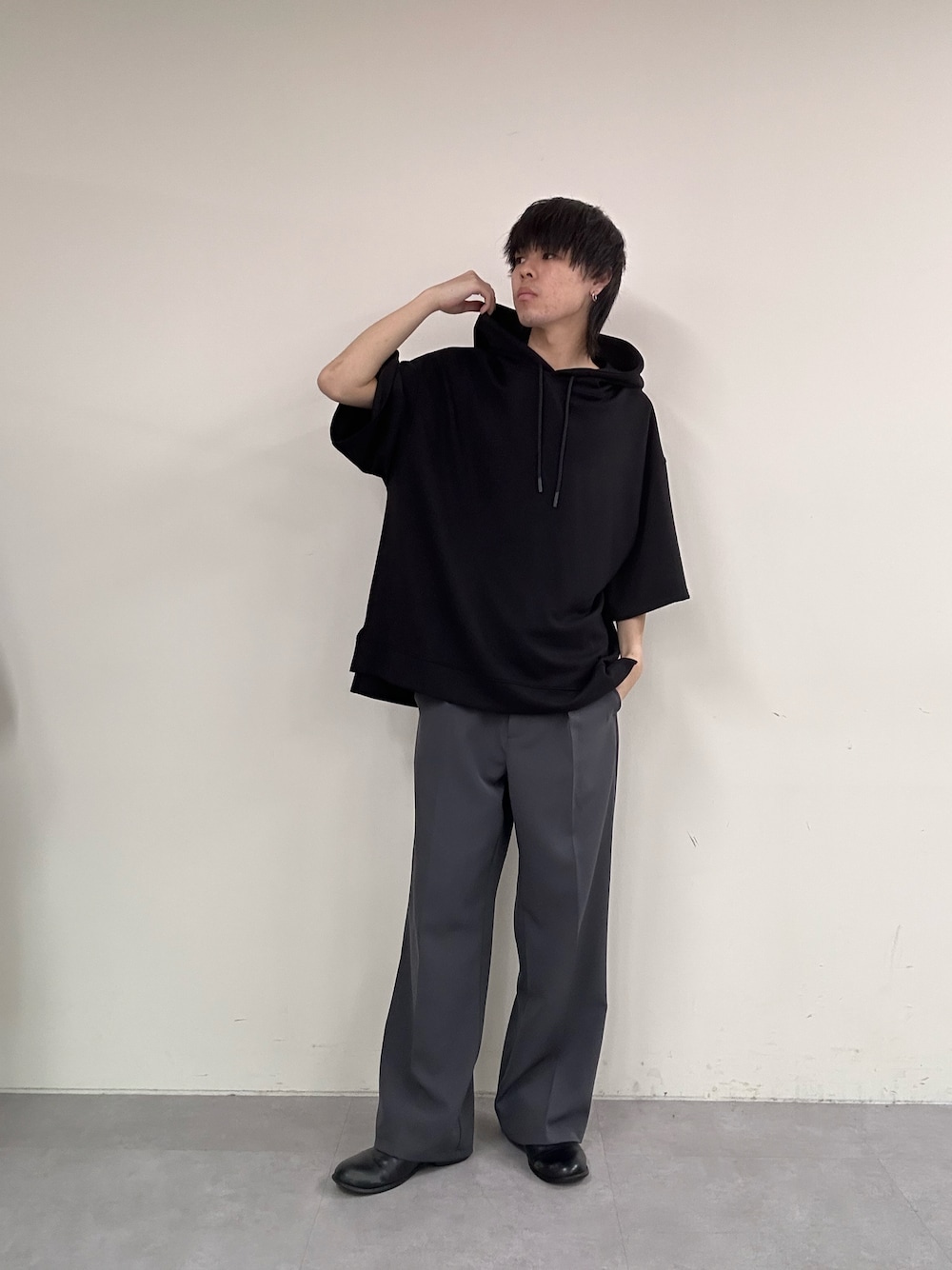 kohey(COLONY 2139 本部)のスラックス「ストレッチイージーケアワイドパンツ(Re)」を使ったコーディネート