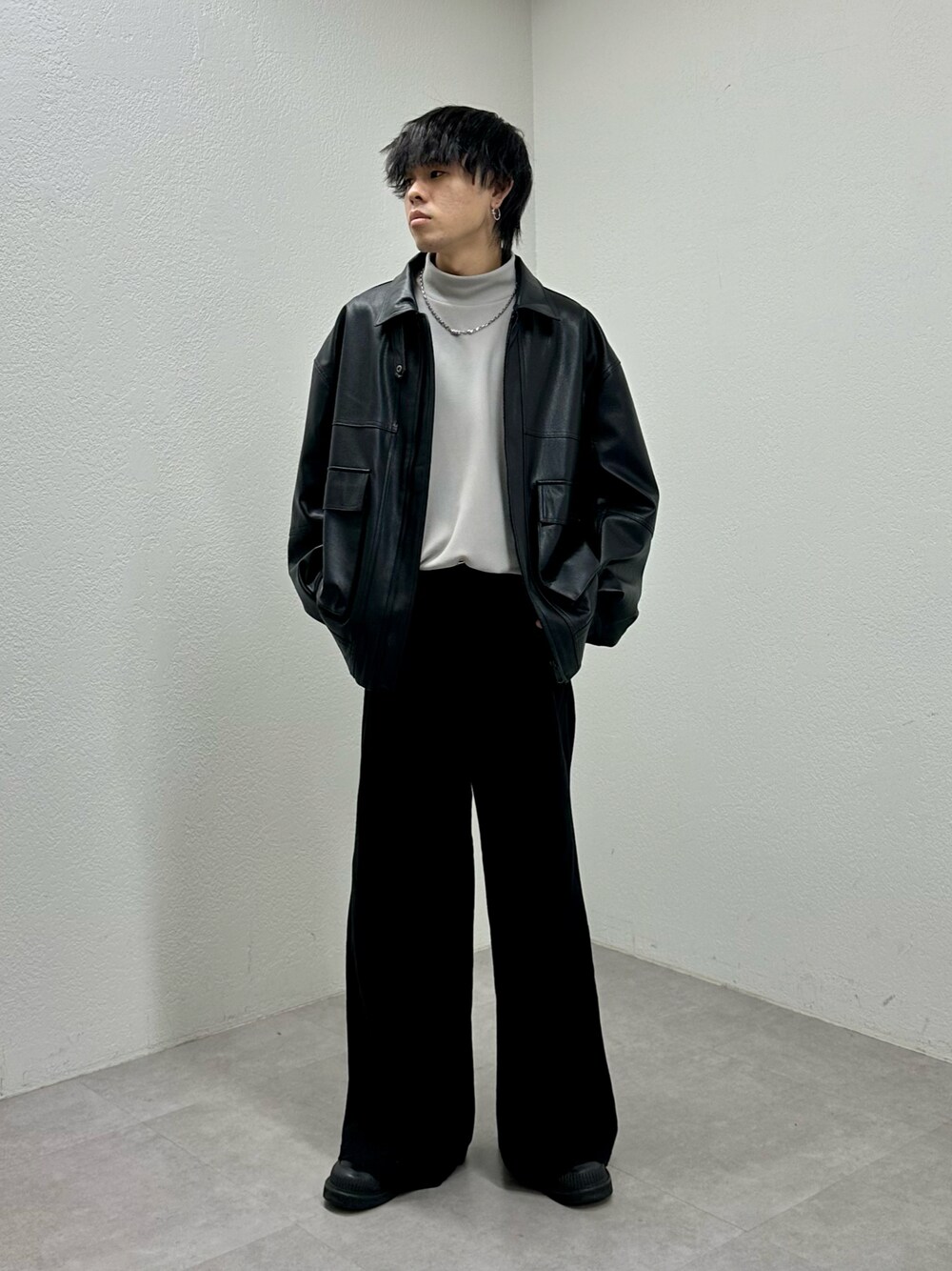 ご覧頂きありがとうございます!! そして、いつもお気に入りといいね、saveありがとうございます。 【アウター】着用サイズL ゆったりしたシルエットで今季らしいスタンド仕様にもなるレザージャケット。 羽織るだけでコーデが決まる最強アイテム。 女性にもオススメです。 【トップス】着用サイズL インナーに最高のモックネックT。 タートルネックが苦手な方とかにオススメです。 カジュアルなコーデからキレイめなコーデのインナーに使っていただけます。 首元も窮屈感はないのでストレスなく着れます。 【ボトム】着用サイズL チノパンのような生地感だけどキレイめなコーデにも使えるワイドパンツです。 2タックなのでタックインしたスタイルもオススメです。 シルエットも綺麗で秋冬のスラックスにオススメです。 もしコーデがいいなと思って頂けたら、是非フォロー、お気に入り、いいねなどよろしくお願いします!!