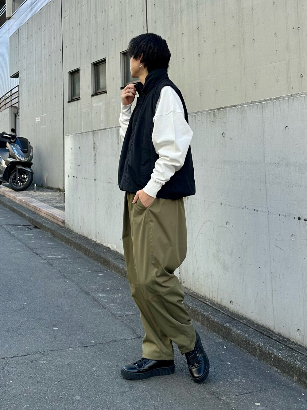 ご覧頂きありがとうございます!! そして、いつもお気に入りといいね、saveありがとうございます。 【ベスト】着用サイズL スタンドネックのトレンド感あるベスト。 これからの季節に活躍間違いなしで、スウェットやシャツ、半袖とレイヤードを楽しめます!! アームホールもかなり広いのでごわつく心配もなし!! 【スウェット】着用サイズL ユニセックスの裏毛スウェット。 オンオフ問わず着れるのが嬉しいポイント。 ゆったりさたサイズ感で○ 【ボトム】着用サイズL スケーターパンツと同じ素材を使ったバルーンシルエットのパンツです。 動きやすくどこにでも穿いて行けるパンツです!! 太めのシルエットになった事でよりビッグシルエットとの相性も○ 女性にもオススメです!! もしコーデがいいなと思って頂けたら、是非フォロー、お気に入り、いいねなどよろしくお願いします!!