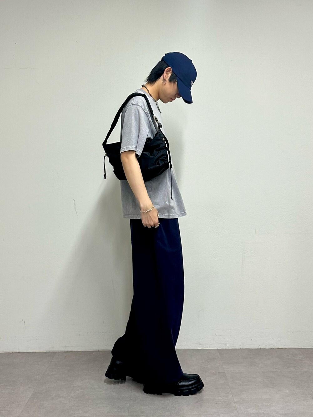 【Tシャツ】着用サイズXL セカンドラインのparadigmのTシャツです。 大きすぎずインナー使いもしやすいサイズ感です。 柔らかくて着心地も抜群のアイテムです!! 【ボトム】着用サイズL 春も外せないスウェットパンツ。 足元は革靴でダル着っぽくならないように。 オンオフ問わず穿けるのは嬉しい。 【バッグ】 ナイロンのショルダーバッグ。 サイドにドローコードが付いていてシルエットを変えることもできます。 シルバーのバックルがコーデにアクセントをプラスしてくれて高みえします。 【キャップ】 インフルエンサー企画の刺繍キャップ。 前後に刺繍がある為前後ろと可愛くてオススメです。