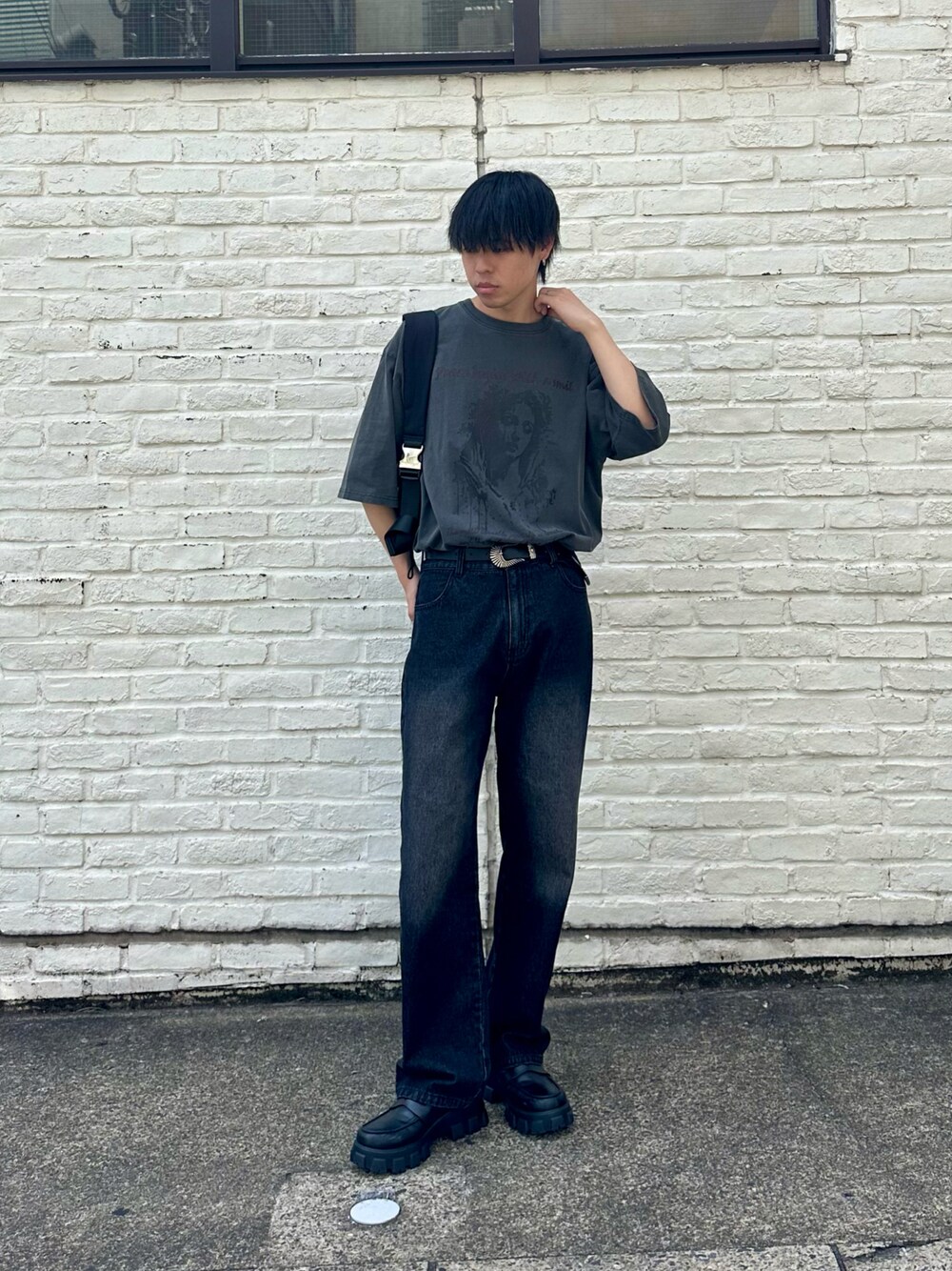 【トップス】着用サイズL さり気ないプリントがかっこいいピグメントT。 ゆったりしたサイズ感で今っぽさもあります。 細身のパンツの時はインスタイル、ワイドシルエットなパンツの時はアウトスタイルもおすすめです。 【デニム】着用サイズL 予約から大人気なストレートデニム。 ワイドストレートデニムの細いバージョンです!! オールシーズンで使える万能アイテム。 【バッグ】 ナイロン素材のミニショルダーバッグ。 ドローコードが付いていてシルエットの調節が可能です。