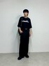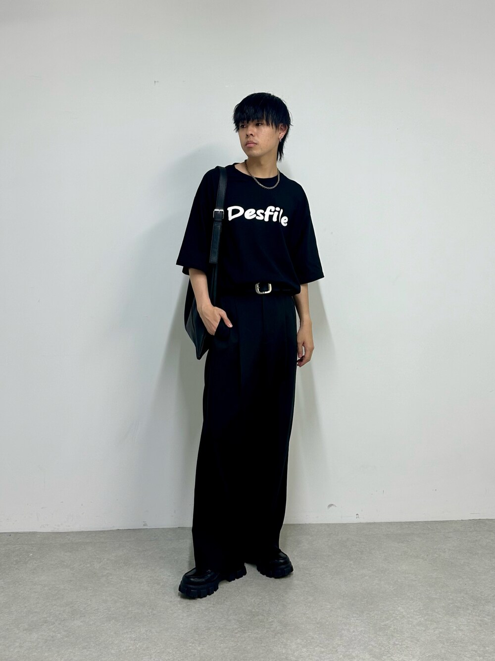 【トップス】着用サイズL 凹凸感のあるロゴプリントが特徴です。 インナーにも使いやすいセンターロゴで、ロングシーズンで使えます!! カジュアルすぎずクリーンな印象に仕上げてくれます。 【ボトム】着用サイズL タックが2つ施されたワイドスラックスです。 薄くこれからの季節にも活躍すること間違いなしです。 キレイめなコーデには欠かせないワイドスラックスです。