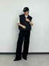 【ベスト】着用サイズL ユニセックスで着れるスタンドベスト。 スケーターパンツと同じ素材を使っていて、ハリ感がありシャカシャカとした生地感です。 半袖からロンT、スウェットとレイヤードできるので、ロングシーズンで着ていただけます!! 【Tシャツ】着用サイズL セカンドラインのparadigmのTシャツです。 加工が特徴的で1枚でもサマになるアイテムです。 【キャップ】 インフルエンサー企画のロゴ刺繍キャップです。前後に刺繍が入ってるのがポイントです。