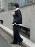 【アウター】着用サイズL 昨年も大人気だったアウターが今年はSサイズが増えて登場しました!! 微光沢のある生地が高級感を出しつつ、さりげなく見えるボアがアクセントになります。 首元はスタンドにもなり、マフラー要らずで首元まで暖かく守ることが出来ちゃいます!! ゆったりとしたサイズ感なので、ニットやスウェットの上からでもごわつかず羽織れちゃいます!! 【ボトム】着用サイズL WEB限定のワイドスラックス。 2タックデザインでタックインしたスタイルも〇 ウエストは後ろがゴムだから楽なのにスッキリ見せてくれるデザインです。 シワにもなりにくく薄くて真夏でも余裕で履けちゃいます!! 【ベルト】着用サイズF コスパ最強のウエスタンバックルベルト。 本革のような見え感に、ヴィンテージ感のある大きなバックルがコーデを引き立ててくれます。