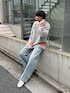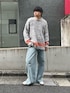【ニット】着用サイズL ふんわり柔らかくゆったりとしたシルエットのシャギーモヘアニット。 裾と袖の配色がアクセントになり、1枚でもよりかっこよく着ていただけます。 真冬はコートなどのインナーにしても可愛いです〇 【ボトム】着用サイズL ゆったりとしたシルエットに加え、裾に向かって緩やかにカーブしたデザインが特徴のデニムです。 脚のラインを拾わずにスタイルアップが叶うデニムになってます。 10.5ozと厚すぎずオールシーズンで活躍するアイテムです。 【シューズ】着用サイズL 軽量で履き心地抜群のスニーカーです。 シンプルながらも、アッパーにはフェイクスエード×スムースレザーのコンビ素材を使用し、上品さとヴィンテージ感のあるデザインになっております。