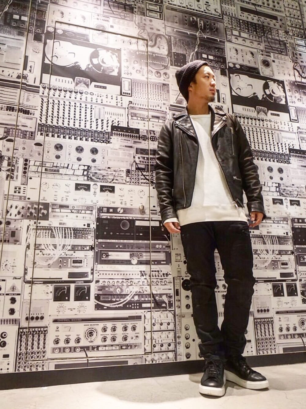 DIESEL KOHEYのライダースジャケット「メンズ ジャケット レザージャケット」を使ったコーディネート