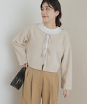コヤマ ヒナタ(DOORS エスパル仙台)のカーディガン/ボレロ「ベロアリボンカットカーディガン」を使ったコーディネート