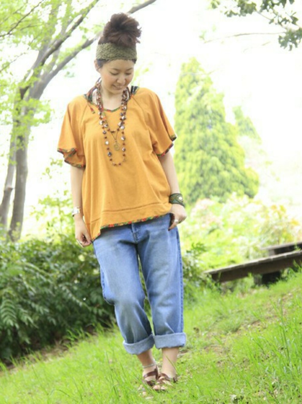 ふんわりしたシルエットが主役のチュニックをデニムに合わせて、ちょっぴりルーズに楽しむレトロ×カジュアル♪