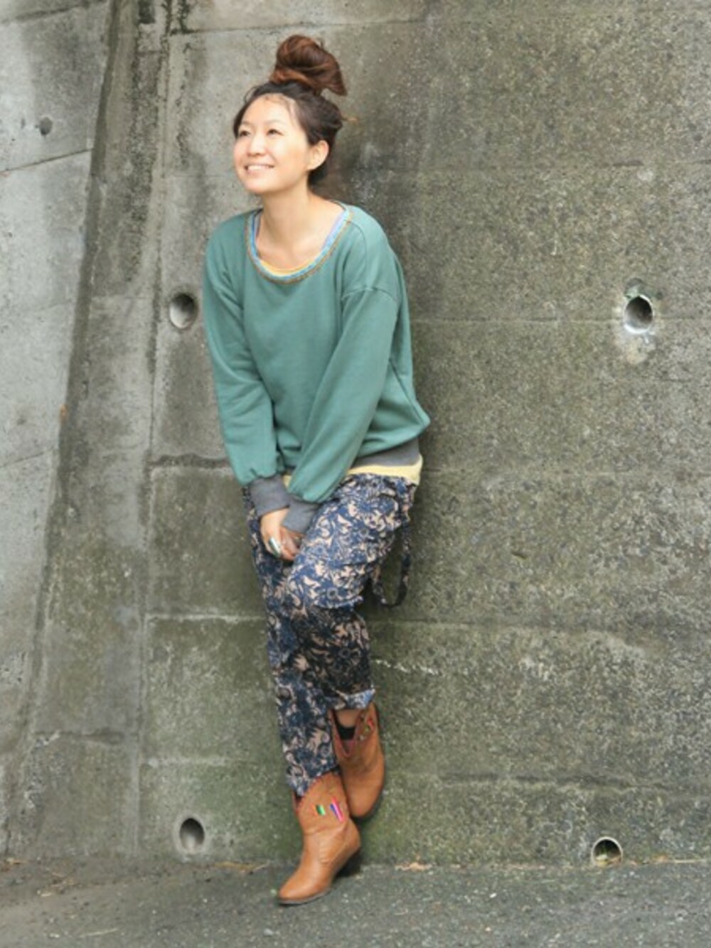 今季トレンドのスウェット素材のトップスをエスニックな雰囲気を感じる柄パンツに合わせて。 全体的に深みのあるカラーでまとめカジュアルの中にも上品な表情になるよう仕上げました◎