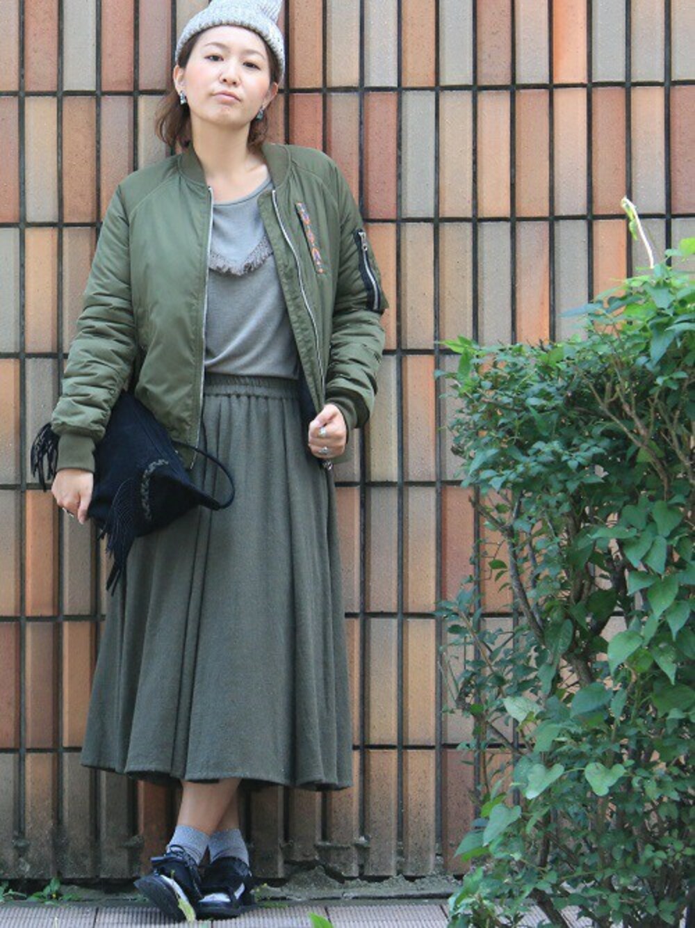 スカートスタイルをMA-1とスニーカーで、カジュアルにハズしてみた。