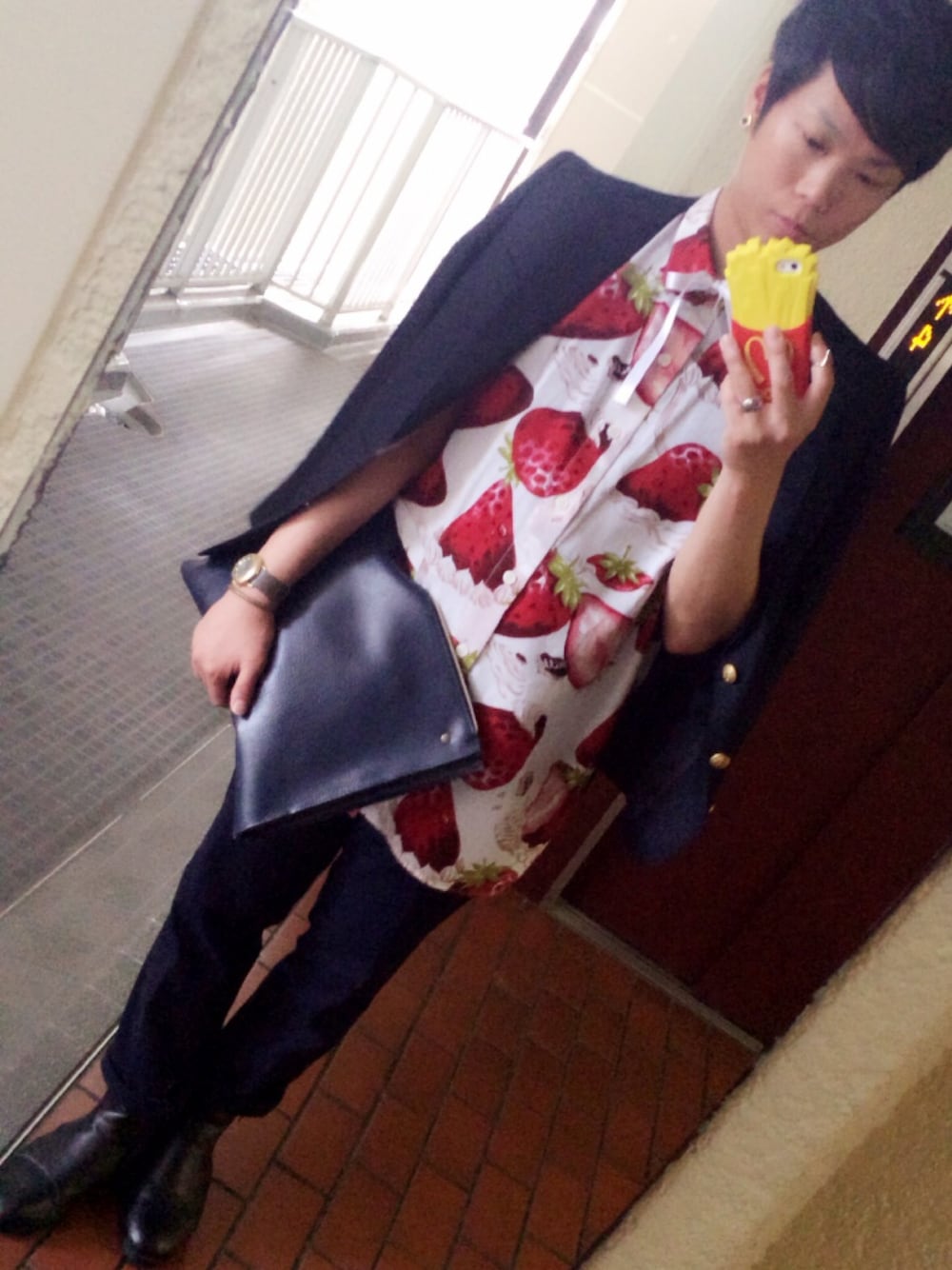 結婚式の二次会とゆう事で。 自分がウエディングケーキのつもりのコーディネート♡ イチゴボーイ♬