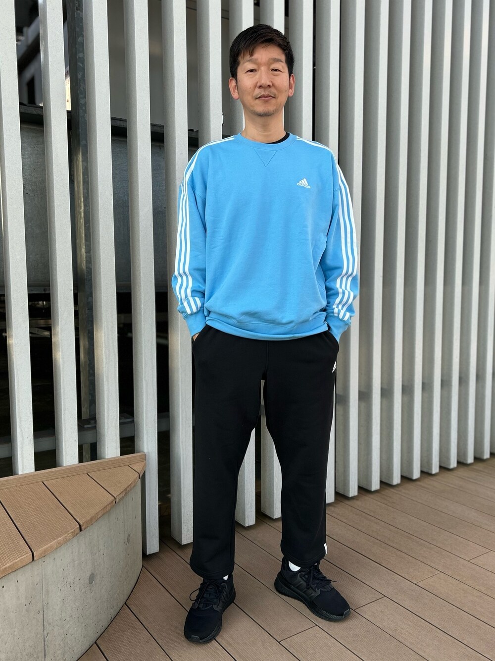 KM(六本木オフィス)のスウェット「エッセンシャルズ プラス ルーズフィット スリーストライプス フレンチテリー スウェットシャツ / トレーナー / アディダス adidas」を使ったコーディネート