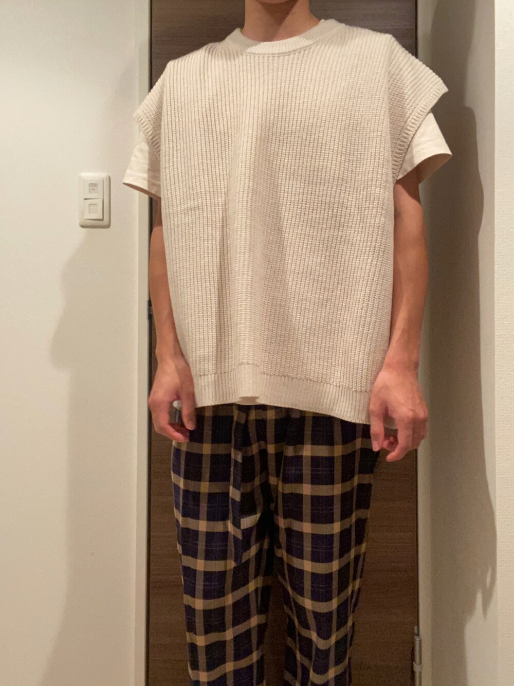 光のその他パンツ「ベルトツキチェックワイドスラックス」を使ったコーディネート