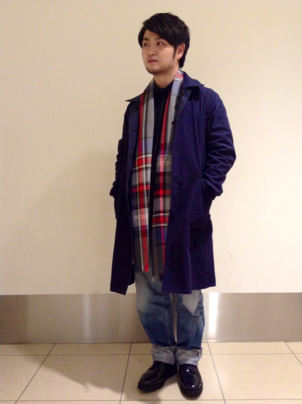 タートル+ステンカラー+ストール+ヴィンテージデニム 男臭さは忘れずにスタイル ちなみにコートはリバーシブル、 気になればチェックチェック。