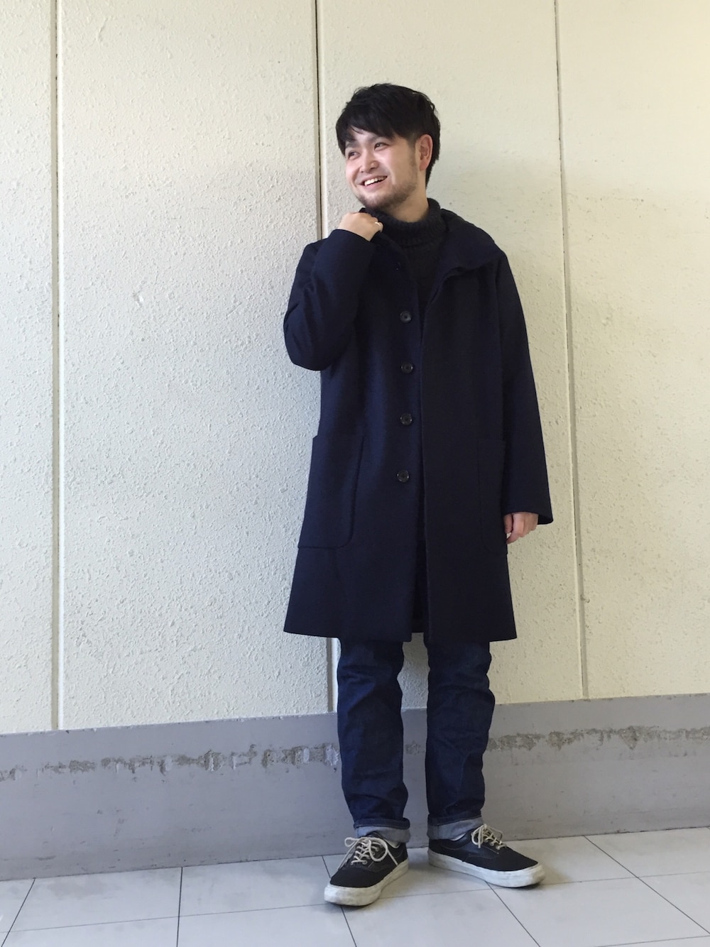 トグルなし、都会的な印象のダッフルコート。 滑らかな裏地の素材感はヘビーなニットもストレスなくレイヤードできそうです。 ダッフルコート着てるメンズってモテそう。