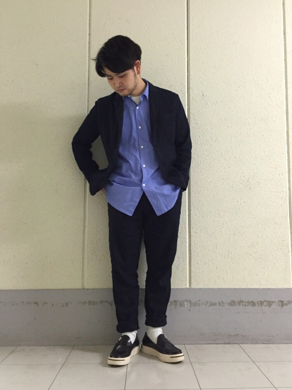 COMOLIシャツの合わせで肩肘張らずのスタイリングとなります キマり過ぎないし・ストレッチきくし、いいセットアップです。 買うならセットでしょ〜 男ならセットでしょ〜