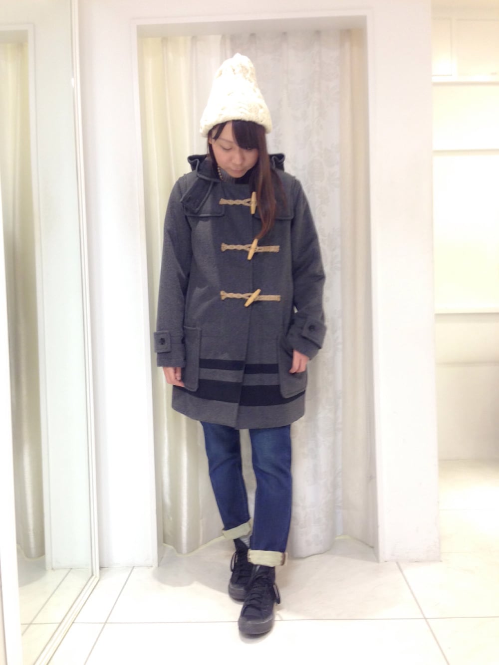 毎年人気のダッフルコートにスポーツテイストのラインが入りました! 裏地もあったか素材なので真冬まで大活躍間違いなしですよ♡ 実はデニムも裏起毛なんです(*^^*)役立つヘビロテアイテムですね*\(^o^)/*