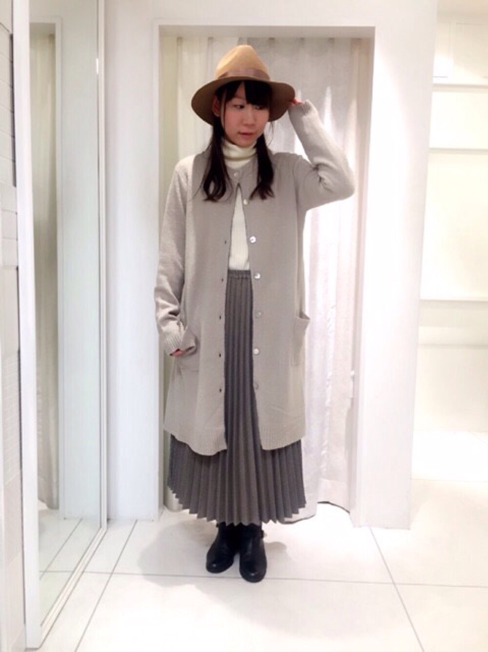 淡いベージュでまとめました! カーディガンはふんわりと肌触りがよく、暖かいのでとってもオススメです! 冬の白っていいですよね🎵