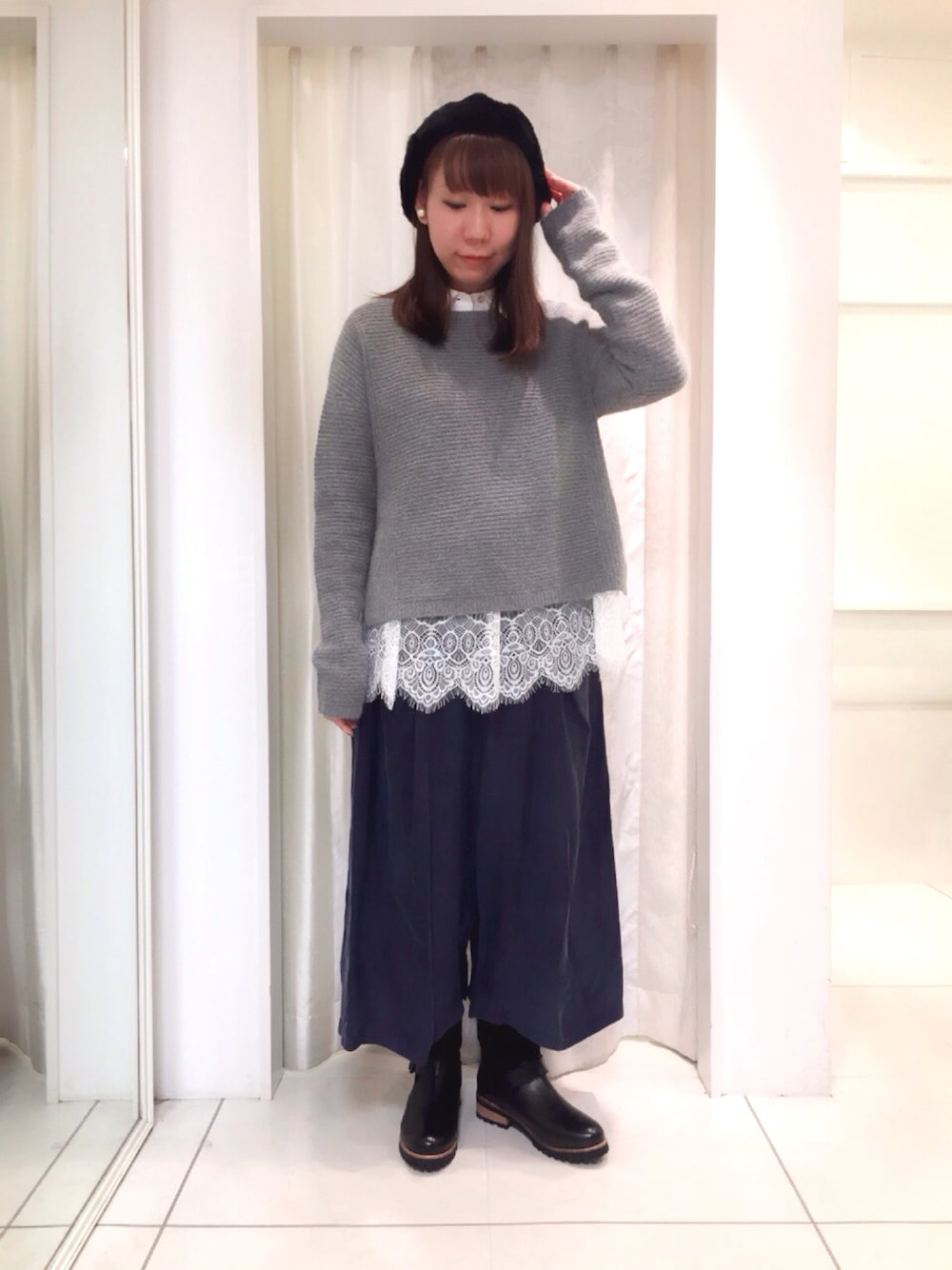 アンゴラのふわふわニットにオススメのインナーシャツを合わせました✨ ゆるゆるな楽ちんパンツでカジュアルコーデの完成です♥️
