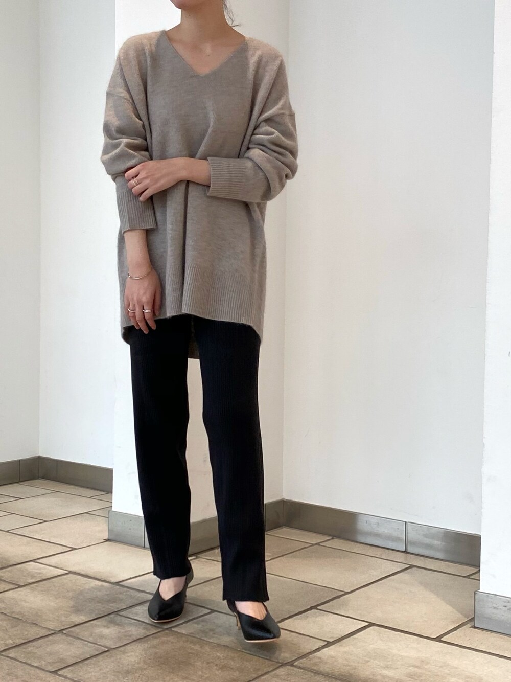【11/29(日)限定!¥2,000クーポン】 深めに空いたVネックがデコルテを綺麗に見せてくれるニット。 程よく毛足が長くふわっとした素材感なので、柔らかく女性らしい印象に◎ 肌触りが柔らかくチクチク感がないのも嬉しいポイントです! お仕事用にはもちろん、リブパンツと合わせたリラックススタイルもオススメです!