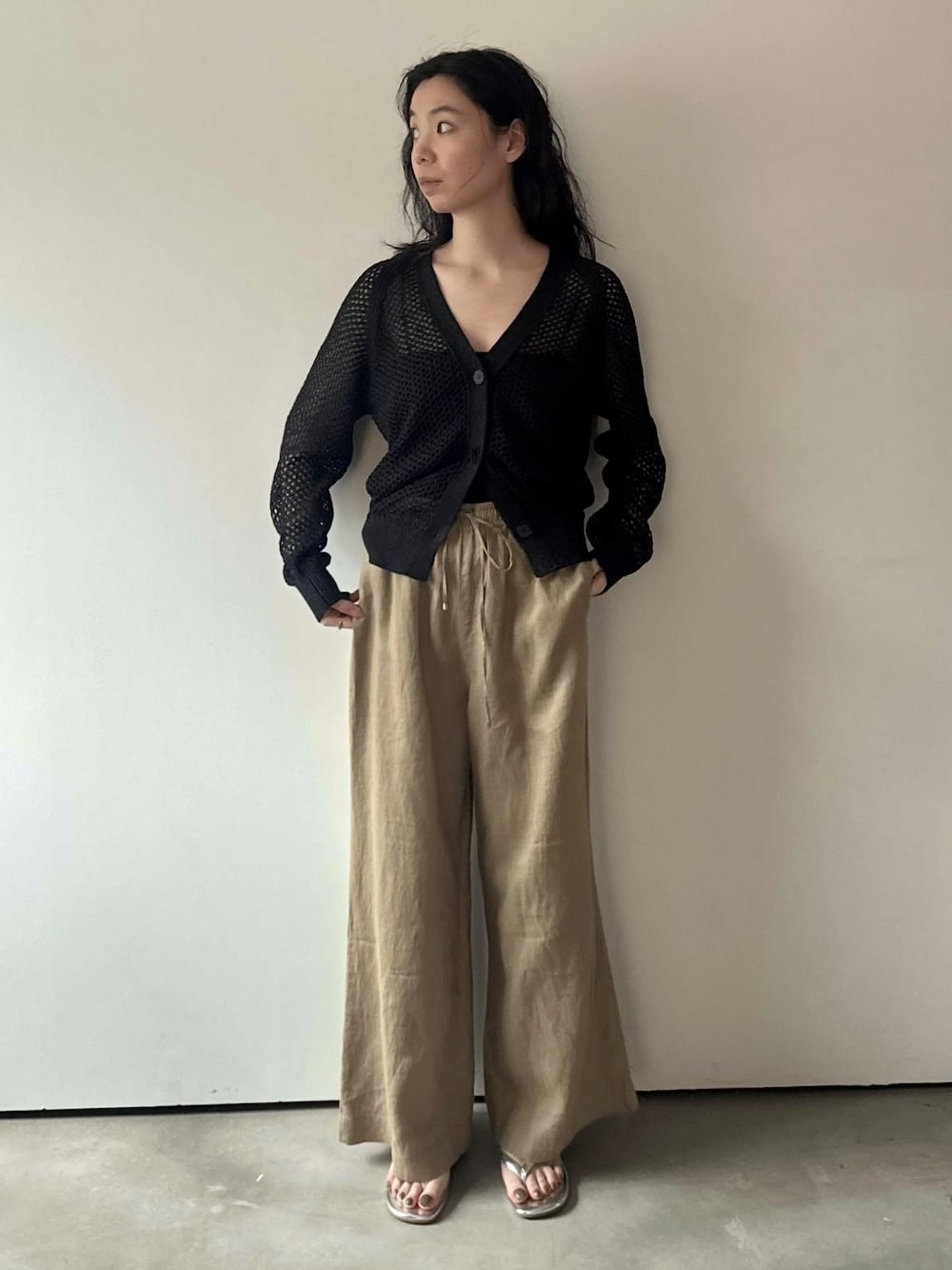 夏でも長袖を着ておきたい、、! そんな方におすすめのカーディガン。 メッシュ仕様で通気性も抜群で快適です。 裾はボタンを1つ2つあけると ワイドパンツ合わせでもスッキリ見えるのでおすすめです!