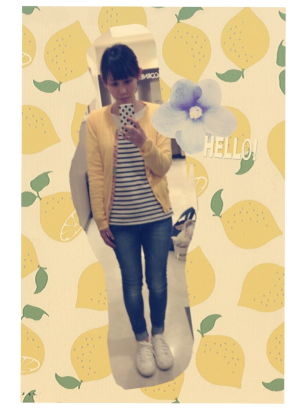カーディガン☞グリーンレーベル しましま☞無印 スキニー☞UNIQLO スニーカー☞無印 足がムチムチパンパンになるけどスキニー好きです☆