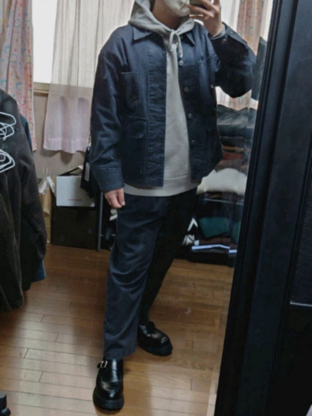 観覧ありがとうございます。 今日のコーデ WYMの新作のユーロレーヨンのセットアップとパーカーです。 ワークブルゾンは伸縮性がありパーカーの上から着ても着心地が良いです。 パーカーはフードのみ裏起毛で生地にボリュームがありフードが立ちやすくなっているので凄く良いです!