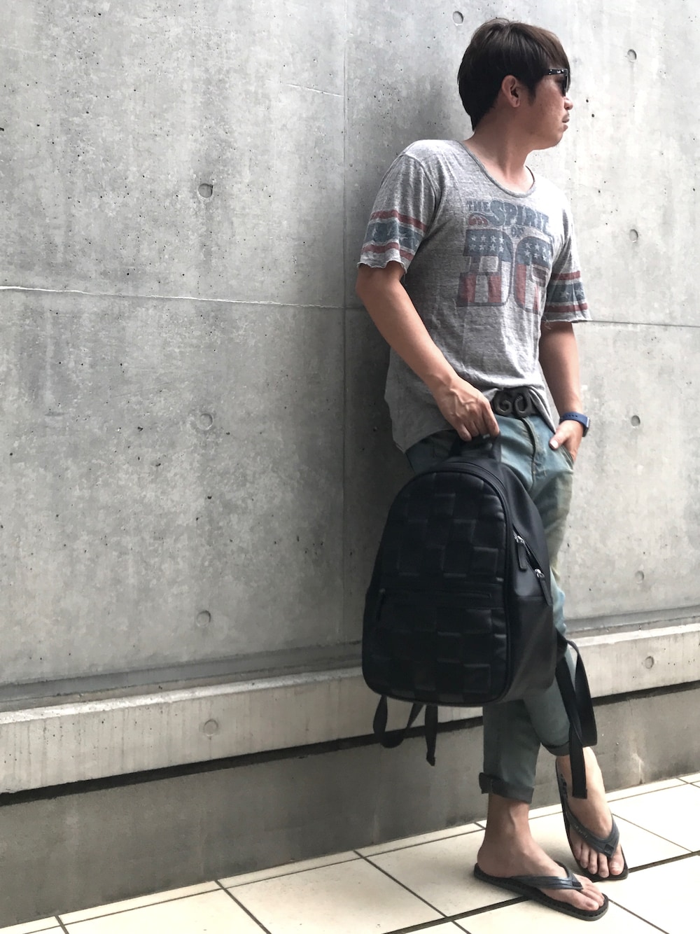 気分はプリントTシャツ。 デニムとの相性はサマーコーデの基本中の基本。 今日の相棒はZARAの大人なリュックサック。