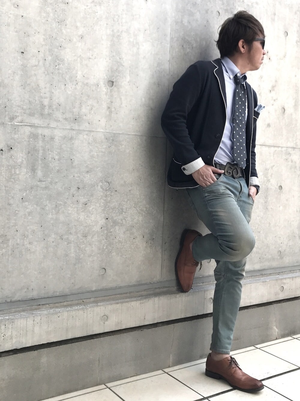 好きなスタイルのひとつ、ジャケット×デニム。 ネクタイをプラスして少しドレッシーに。 ボーイフレンドデニムでさらにひとつ遊びを。
