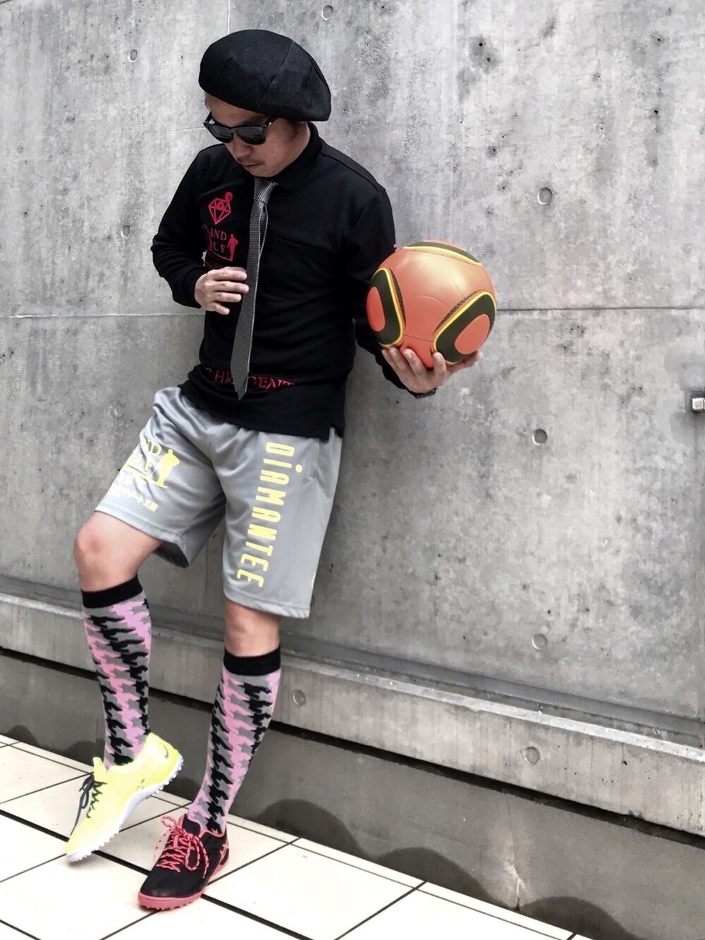 フットゴルファー コージャ今村・2017シーズン2ndモデル。 ゲームシャツはブラック×ピンクのカラーリングにグレーパンツのコーデ。 今年のソックスはありそうでない千鳥格子。 コージャプロデュースフットゴルフブランド「DiAMANTEE 」のフルコーデ。 フットゴルフをファッションからも発信したいです。
