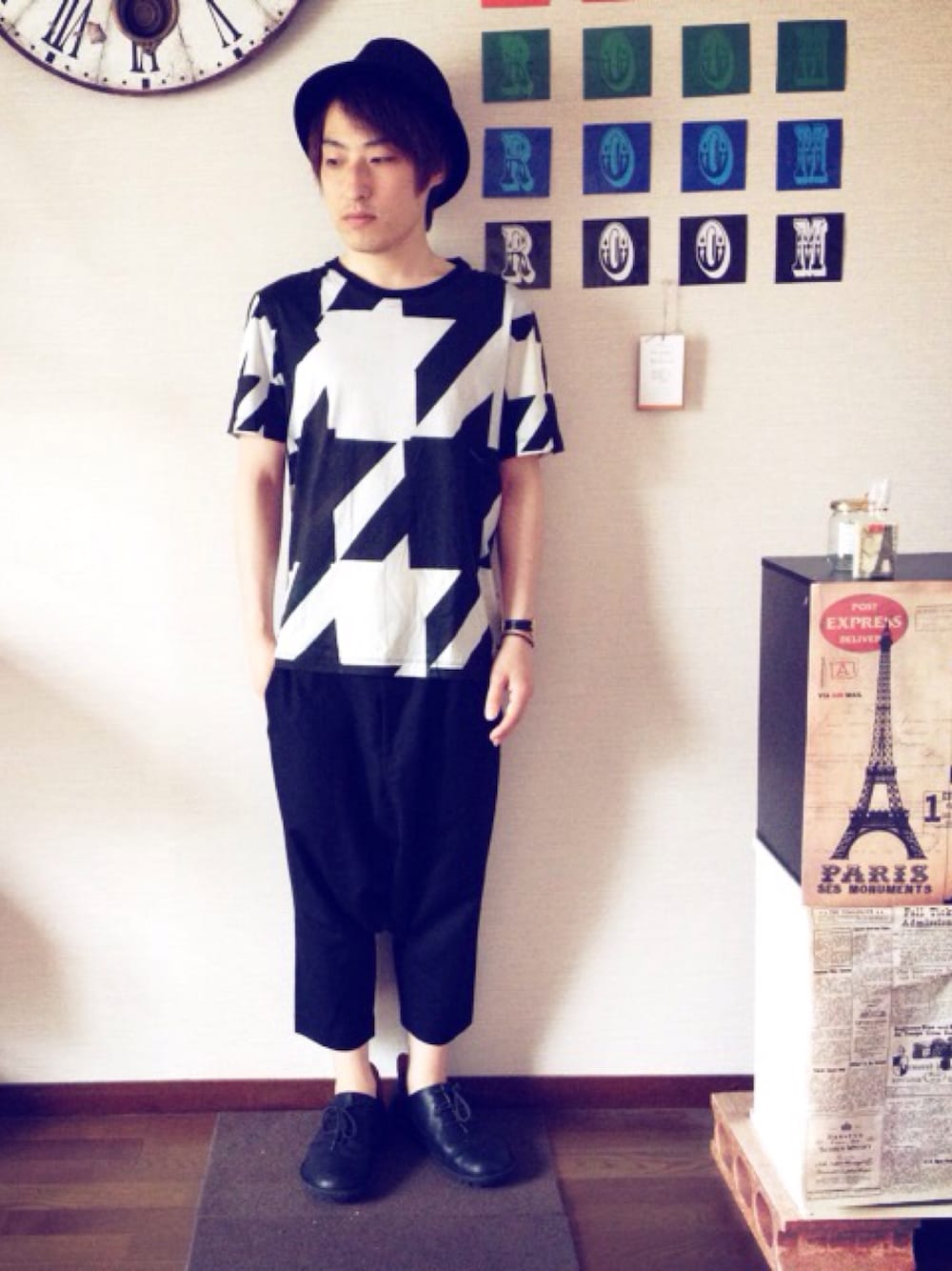 Hat: Racal Bracelet: 😕? おはようございます、kOJiです☀️ 表と裏で3つの大きさの千鳥格子がプリントされてるポール様🐥 サイズはXLでビッグTとして着用してます♬ ビッグTにはCdGとトリッペンを合わせる傾向が強まってます。 今日は父の日ですね🌟 フレッドペリーのポロシャツを贈りました👕 以前ラルフのポロシャツをあげたので、来年はラコステをあげてポロシャツ3大ブランド制覇してもらおうかな😄