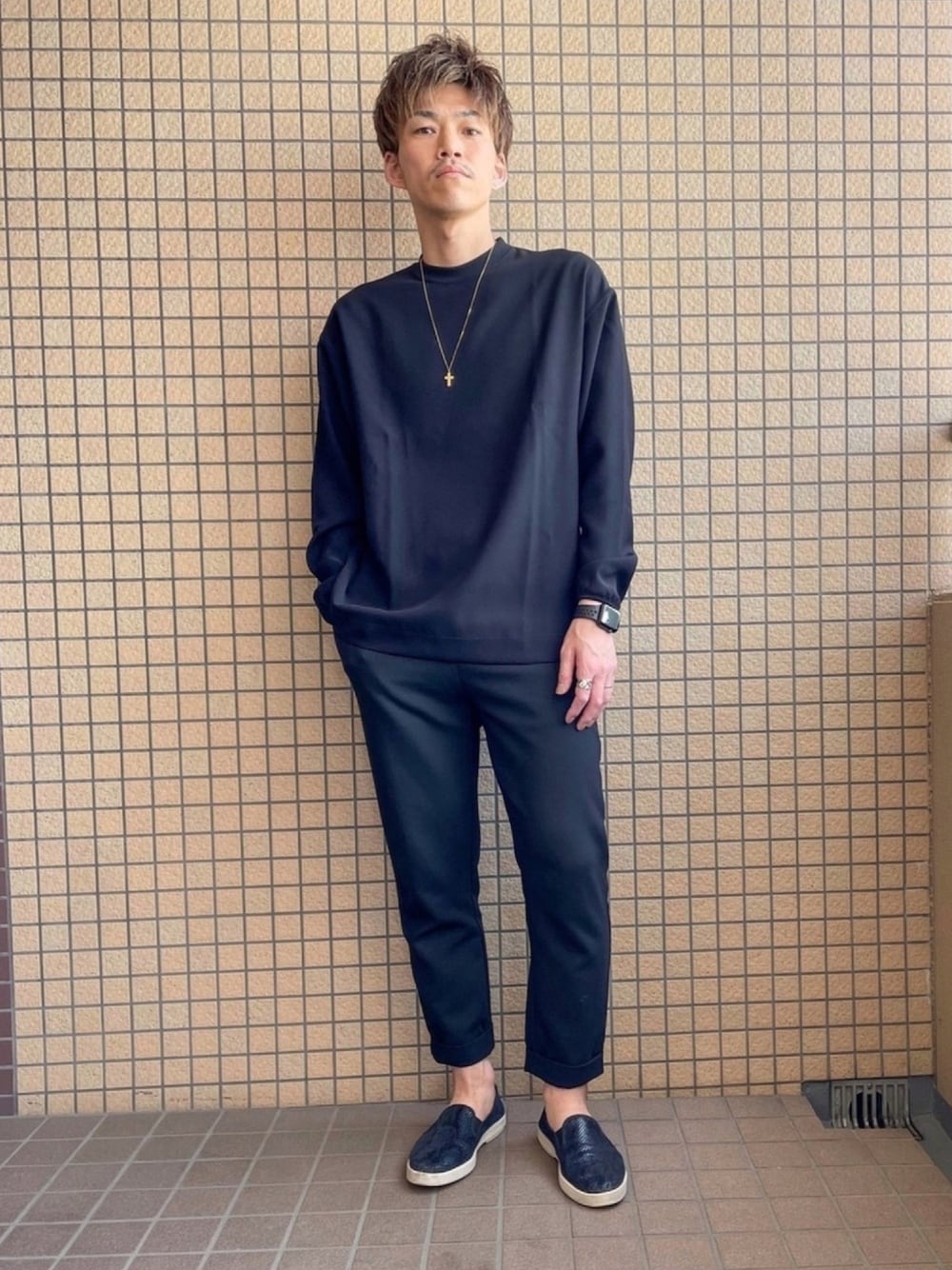 ⚫️ブラックコーデ⚫️ 黒の統一で誰でも簡単に大人っぽく👍 ゴールドのネックレスがお気に入りアクセント✨