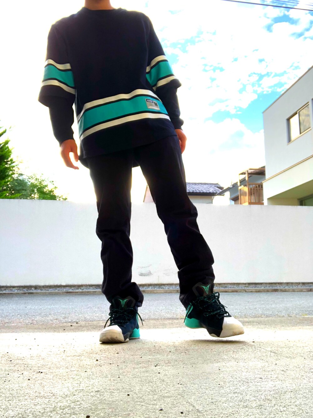 久々投稿、、 お天気がいい感じ☀️ このバッシュお気に入りです✌️ BLACK×BLUE×WHITEで統一しました。