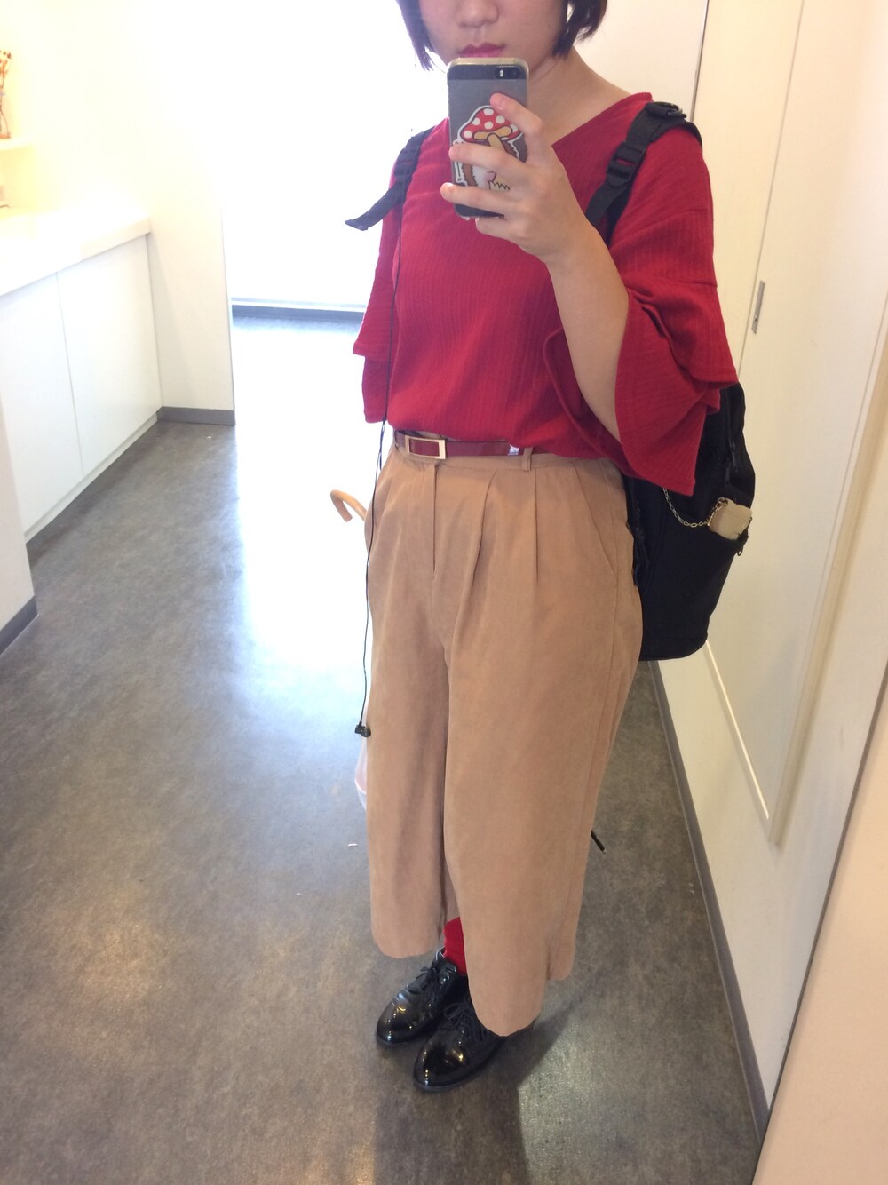友達に貰った「青リンゴグミ」 不味いって言われたけど 美味しかった。← 舌がバカでした🙄👅 今日は赤のトップス#Honeys と、黄緑の傘だったので 今日のコンセプトは「りんご」 🍏🍎
