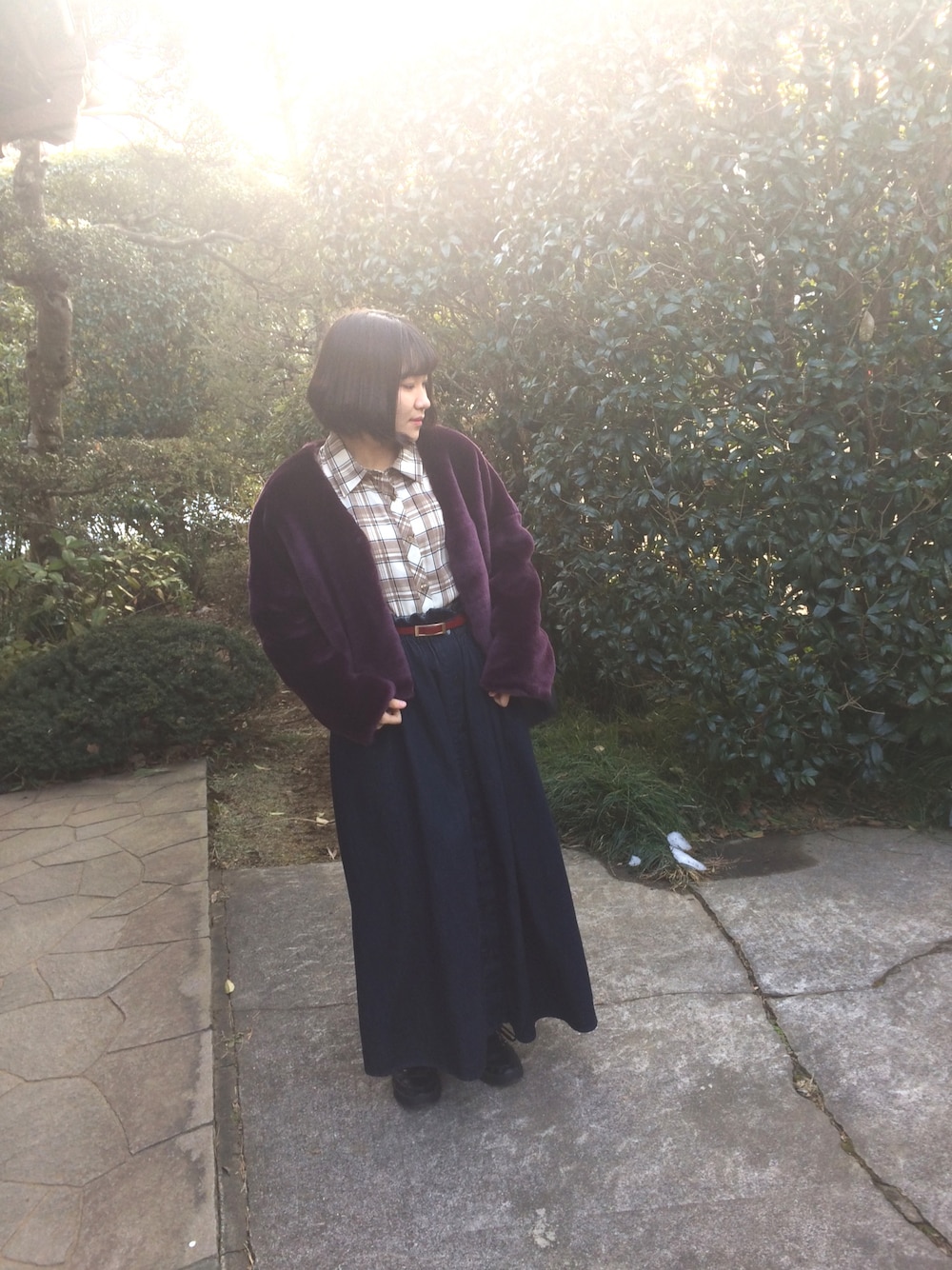 みんのデニムスカート「フロントボタンフレアースカート」を使ったコーディネート