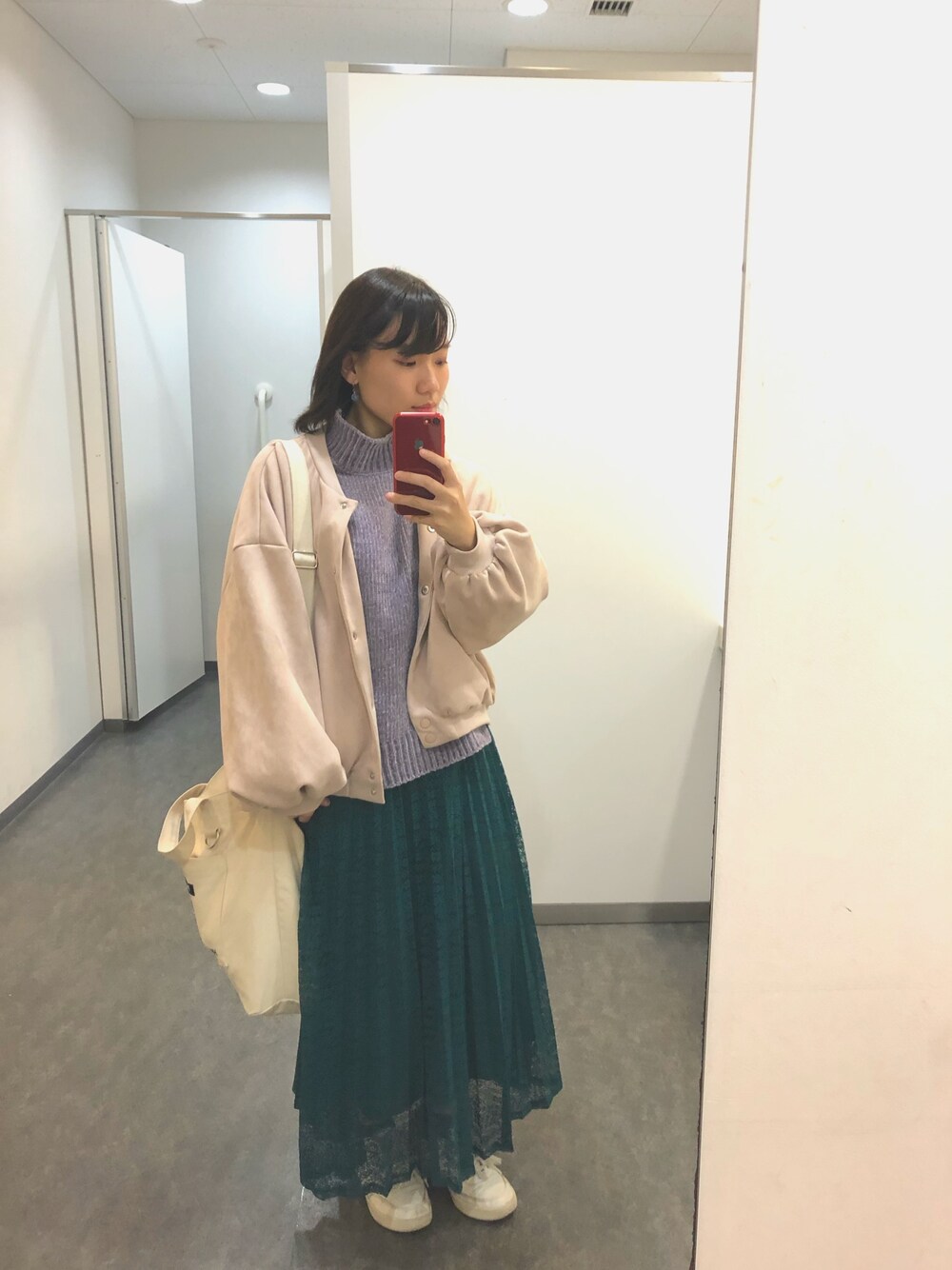 みんのブルゾン「ポンチスウェードブルゾン」を使ったコーディネート