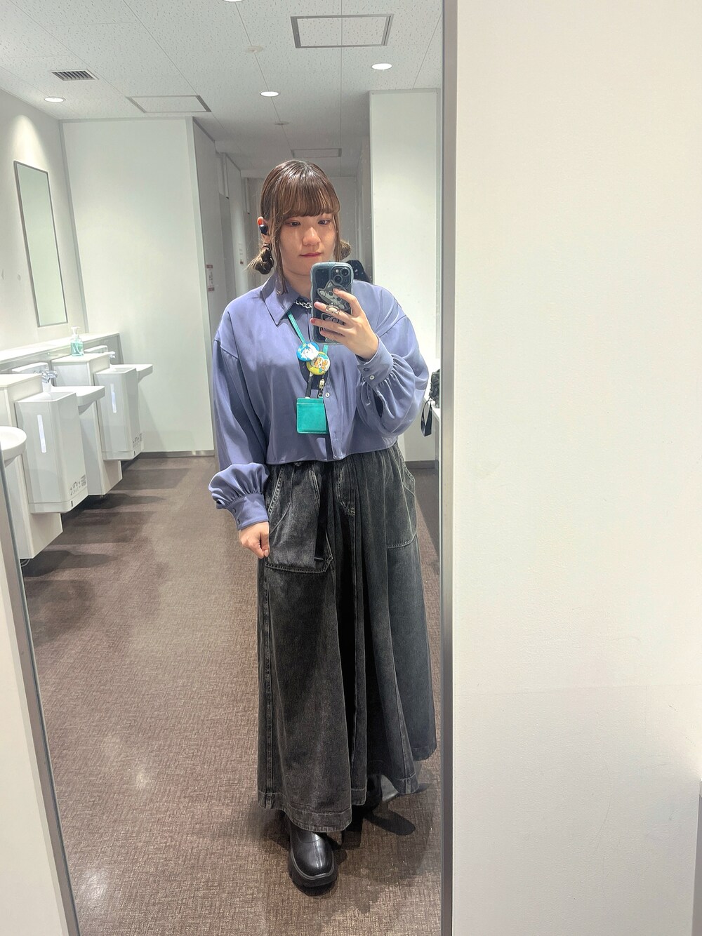 動きやすいデニムスカートにショート丈のサラッとしたシャツを合わせてみました♡ 肌触り最高なので一日ゆったり過ごせそう🤭 デニムスカートにはポケットも付いてるので、 お仕事にもってこいのスタイルです。 アクセは首元を華奢に見せたくてシルバーを持ってきました。 なんで二枚目こんなにムッとしたんだろう。
