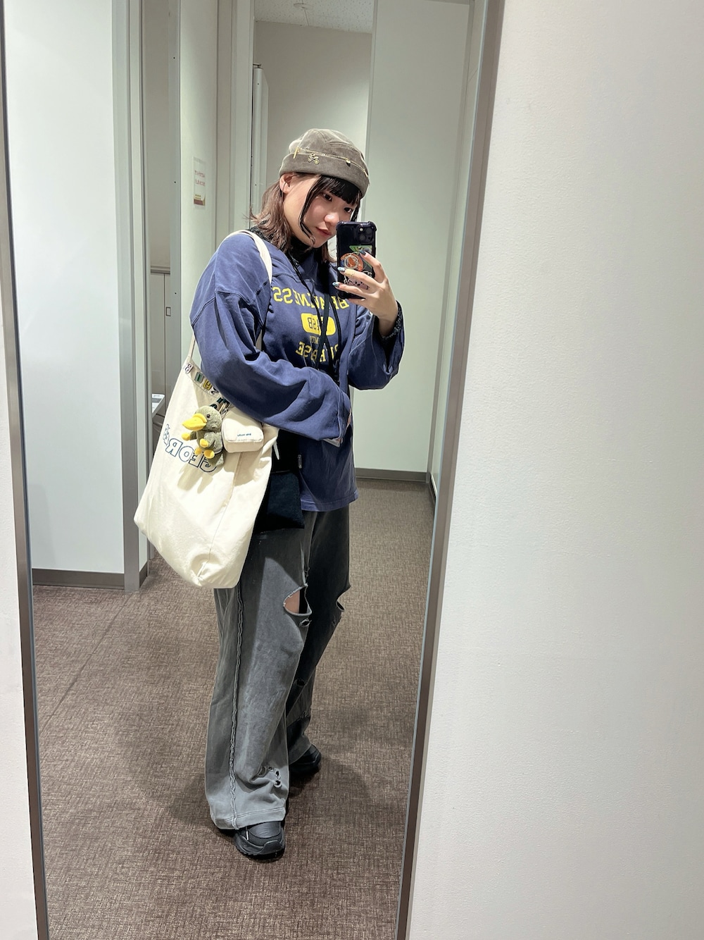 デザイン入りのスウェットパンツで ラフになりすぎず、カジュアルに💙 GEORGE'Sのカットソーめちゃくちゃ使えるし、色味も可愛いしシルエットも綺麗でお気に入り✨ シアーインナーを入れたら簡単レイヤー♡ トートバッグもたくさん入ってオススメ♡ かなり入れてもゆたっと可愛く持てます✋ 帽子は出てこなかったけど、 14+(イチヨンプラス)のもの👼🏻 春の新作アイテムで、デニムだけどラフすぎなくて大好き🫶🏻3色展開で選べます♡