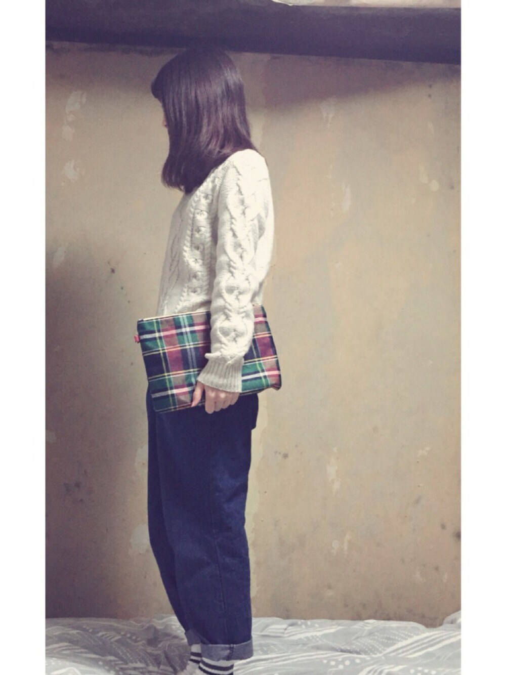 ホワイト系のニット/セーターを着用したレディースの秋コーディネートの1枚目の写真