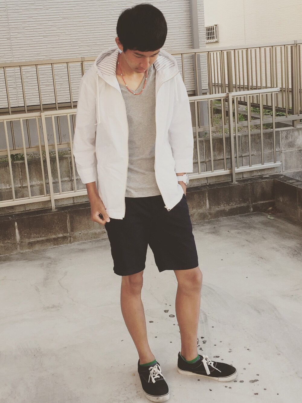 初投稿です。 ちょっと涼しかったのでマウテンパーカーをきました。 全体的にシンプルにしてみました。 ネックレスと腕時計でワンポイント!! RAGEBLUEのマウテンパーカー気に入ってます。