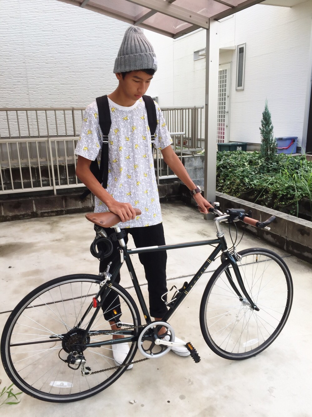 今日は愛車に乗って古着でも見に行こ!! この前買ったリュックがやっと使える!! Tシャツはキースへリングです!!