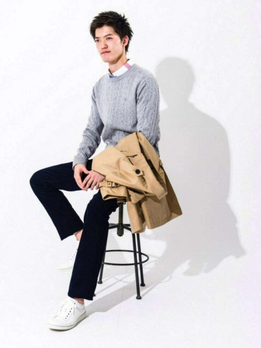 ブラックレーベルのトレンチはスリークウォーター丈なのでオフの日でもトレンチを! 羽織としても気温に合わせ脱いで待ってるだけでも全体にアクセントを与えてくれます!