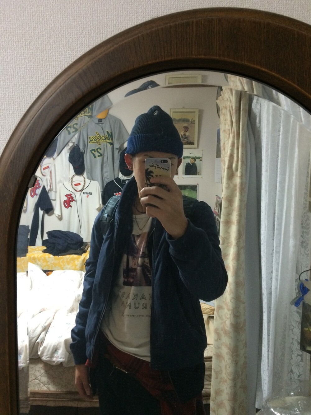 腰巻のチェックシャツと、 この時期らしさを取り入れるためにニット帽。 スケボーやってそうな格好ながらに、 スケボーほとんどできません…